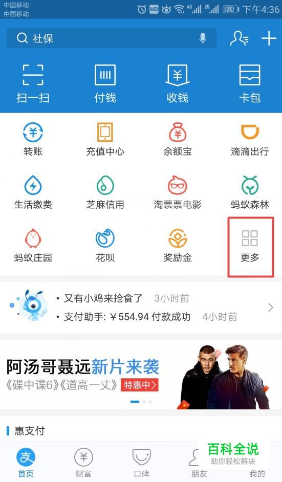 进入支付宝之后,我们点击更多;