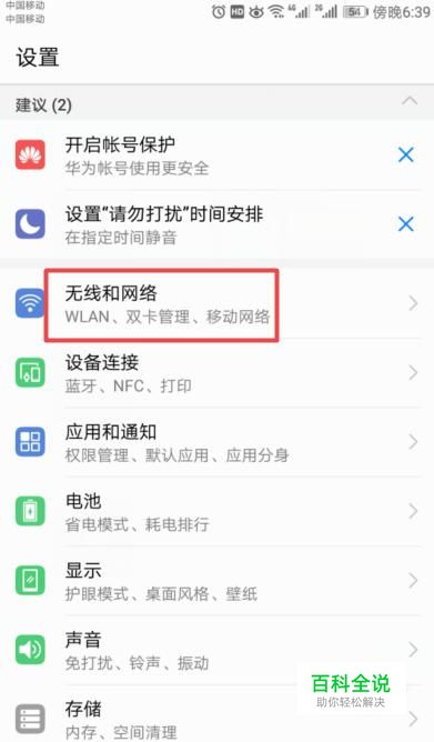 弹出的界面,我们点击无线和网络;