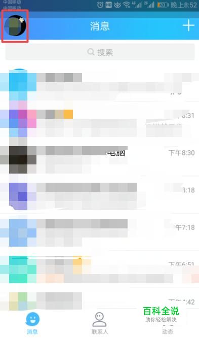 首先,我们打开我们的手机,然后我们进入手机QQ,之后我们点击左上角的头像;