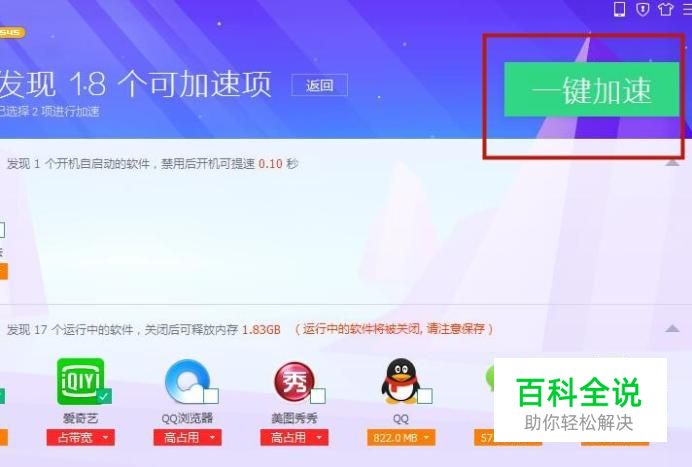 最后选择勾选正在运行且我们用不到的软件并点击屏幕上方的深度加速就可以了。通过以上操作,我们就能够成功解决电脑是CPU内存占用率过高的问题了。