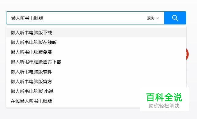 首先搜狗浏览器中输入懒人听书电脑版并点击回车键,如下图所示。