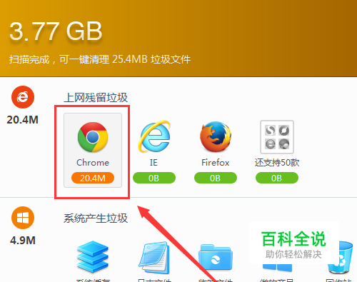 然后用金山毒霸的垃圾清理搜索下,我们看到有20.4M的残留垃圾