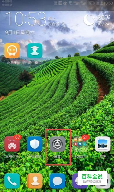 首先,我们打开我们的华为荣耀9,然后我们点击设置;