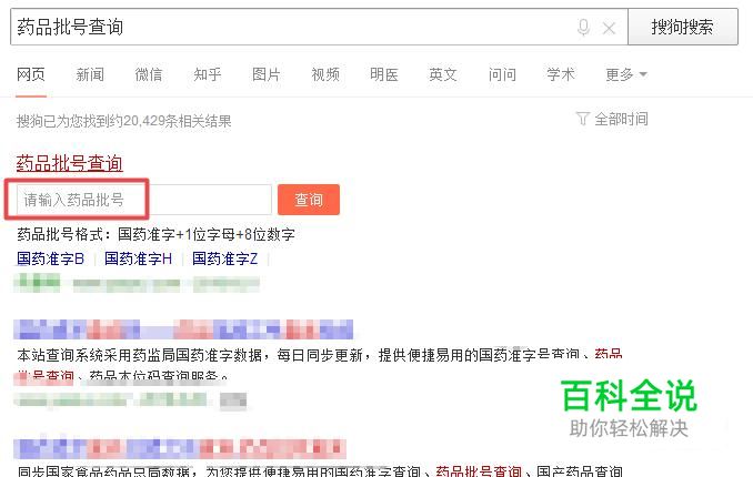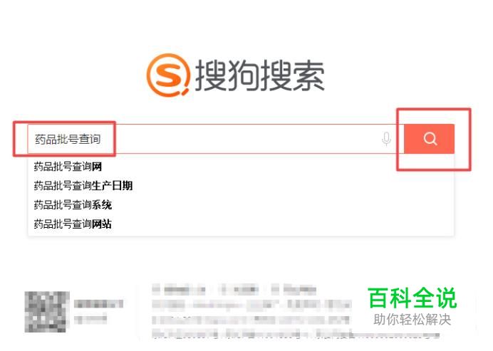 首先,我们打开我们电脑上面的浏览器,然后我们在搜索引擎中输入药品批号查询,然后我们点击后面的搜索按钮;