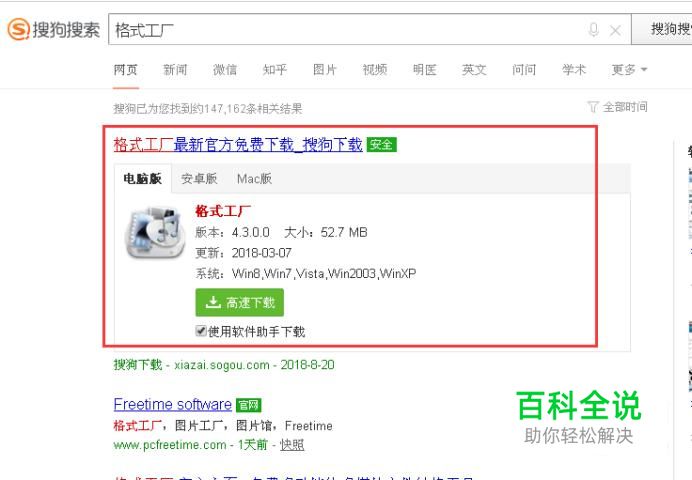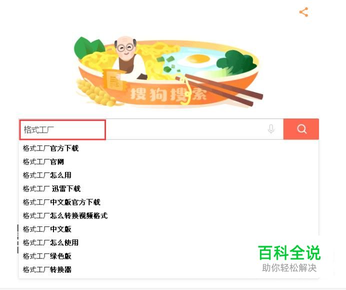 首先打开搜狗浏览器,输入“格式工厂”点击搜索。