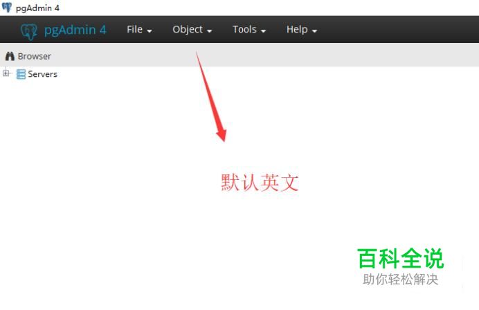 打开PGAdmin的时候,你会看到顶部的菜单都是英文,这很不利于我们使用,下面需要将英文都切换成中文