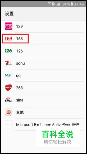 2.选择需要设置的电子邮箱,这里以“163”为例。