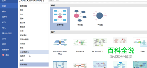 然后点开亿图图示软件,点击开始-思维导图,选择要画的思维导图。