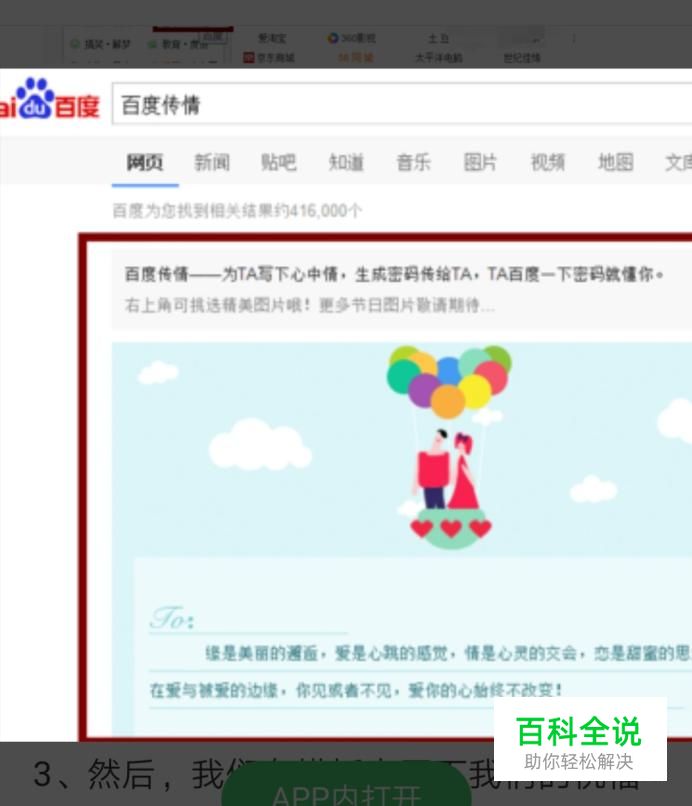 打开浏览器,在百度搜索中输入百度传情。