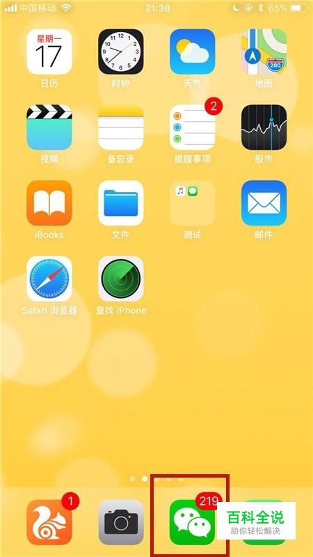 首先在我们的手机桌面上找到微信并点击它,如下图所示。