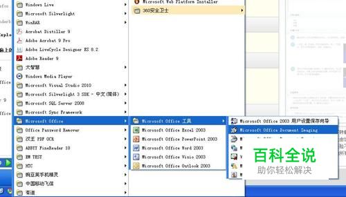 在程序菜单上按如下图所示的路径查找到office 2003这款自带的软件