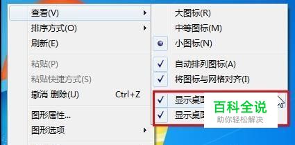 现在回到Win7桌面,可以看到背景已经被设置成了刚才的屏幕截图。在桌面上单击鼠标右键,将查看下的“显示桌面图标”和“显示桌面小工具”前的勾选都去掉。