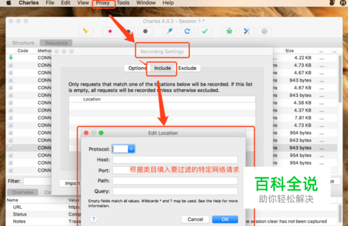 长期特定的网络封包 路径:Proxy->Recording Settings->Include→Add,在编辑框中填入要封的网络请求,如下图所示: