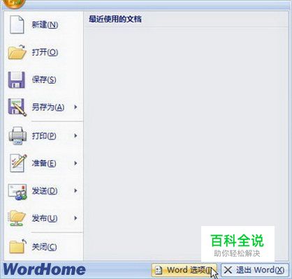 第1步,打开Word2007文档窗口,依次单击Office按钮→“Word选项”按钮。