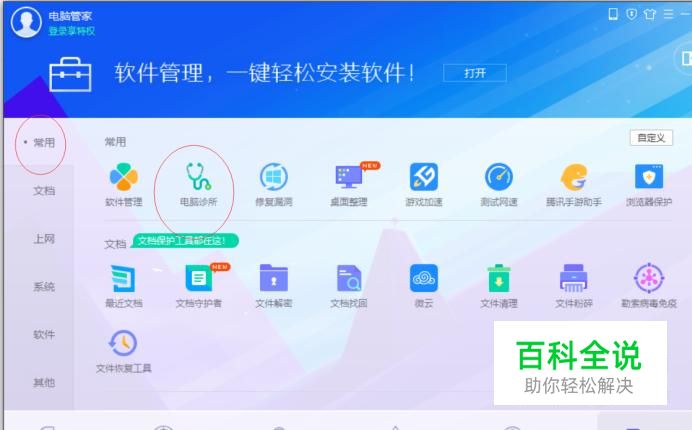 打开 电脑管家,选择工具箱,如下图