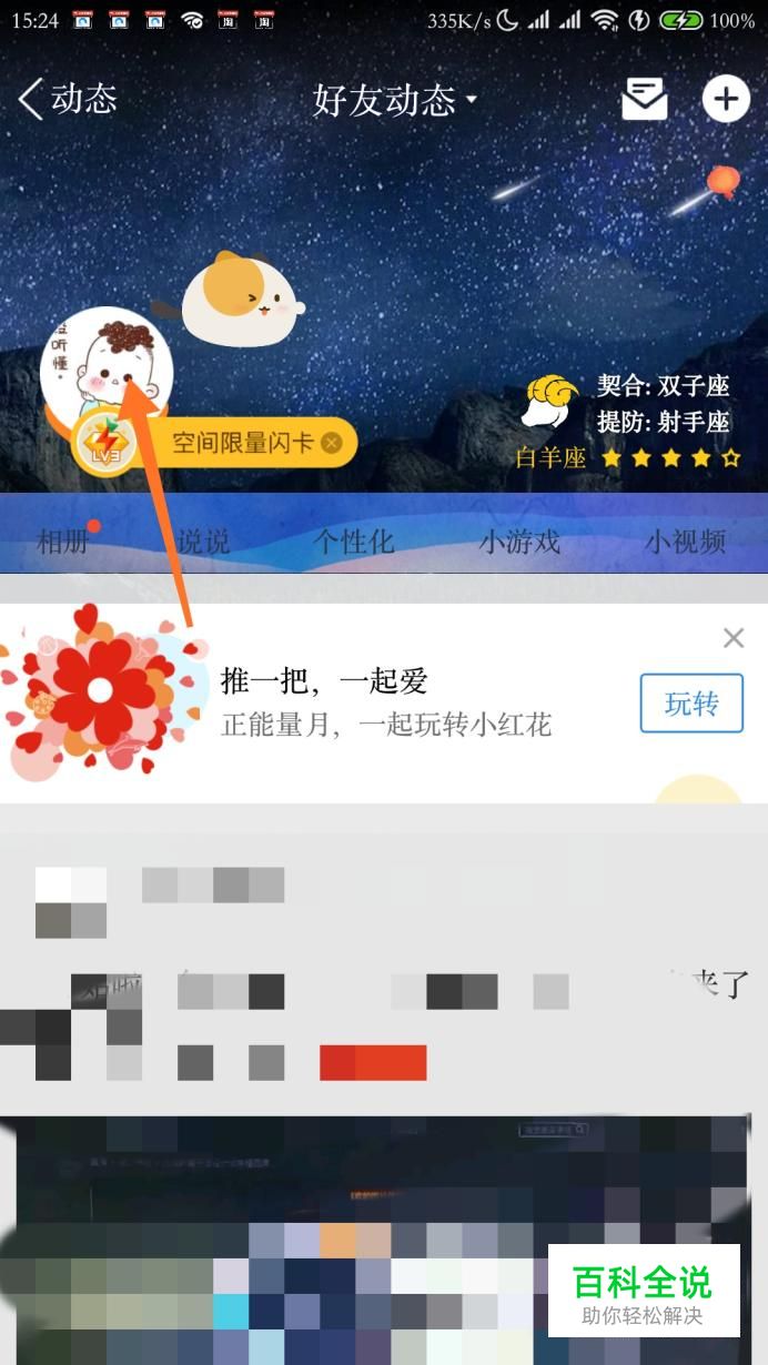 这里就是我们自己的空间了,点击右上角,弹窗点击“好友动态设置”。
