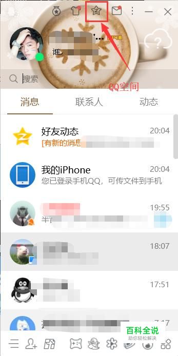 首先登录QQ,在QQ的主界面找到星星图标。单击星星图标会打开网页进入QQ空间。