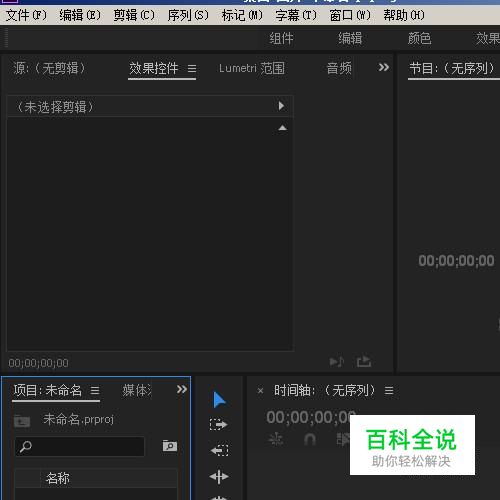 下面用PR软件来演示操作。启动PR软件,新建项目后,进入到操作界面中。