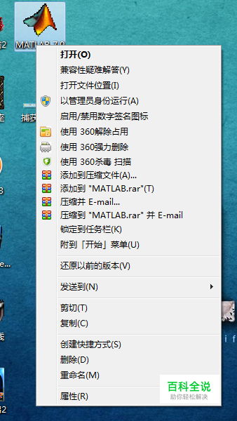 安装完成后,鼠标右键单击matlab7的图标,如图1 图1