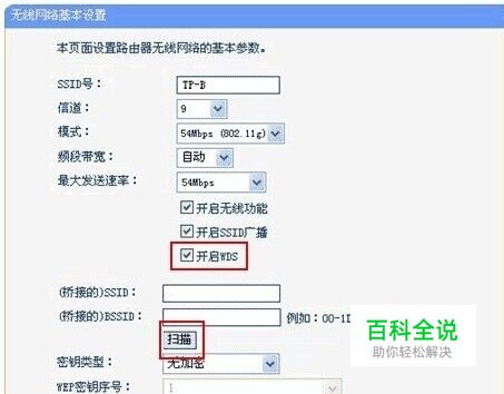 如图 点击开启WDS (图为网络截图,仅看红框即可) 点击扫描 下一步
