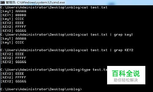 type/cat + grep 过滤文件内容:cat test.txt | grep KEY2 或 type test.txt | grep KEY2
