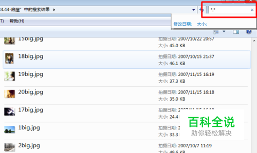 在右上角的搜索框内输入*.*(移动文件夹中所有文件)或*.jpg(移动各文件夹中的jpg格式)等