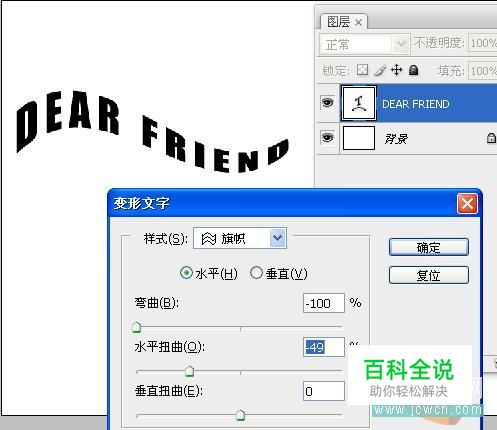新建白色背景文档,新建文字图层,输入黑色文字,对文字进行变形处理。
