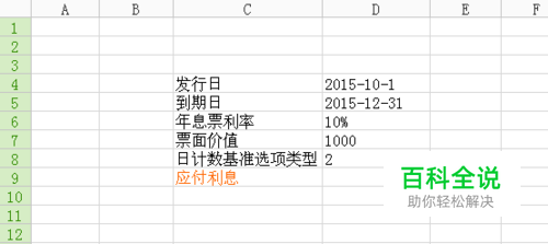 打开WPS表格把举例说明项目里已知数据输入到表格里,计算出到期一次性应付利息?