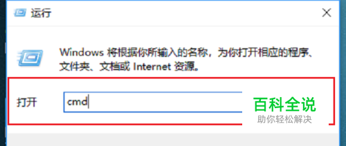 第一步在我们的电脑上按win+R键打开运行,输入cmd,点击确定,打开命令提示符,如下图所示: