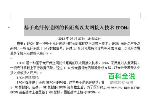打开word2013文件, 选中要使用样式的“一级标题文本"。