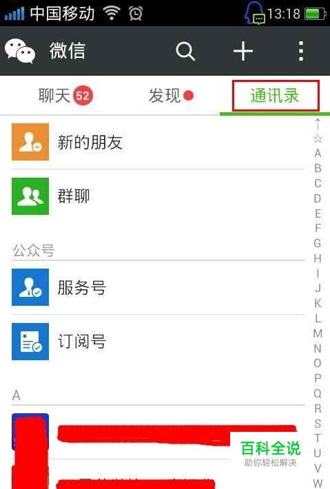 手机打开微信登录自己的微信号,进入聊天窗口,点击通讯录,进入好友(通讯录)页面。