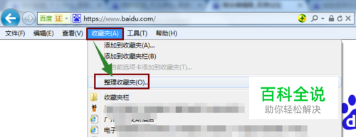 打开IE浏览器,单击 收藏夹 - 整理收藏夹。