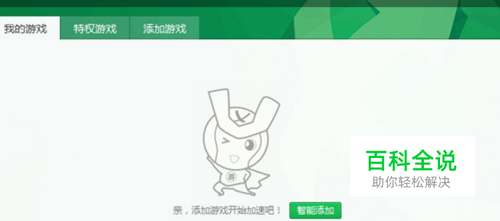 登录成功之后,在左边的列表中看到已经安装的游戏,如果这里面已经有了要加速的游戏,直接“启动加速”按钮即可,如果没有安装过游戏,点击“智能添加”即可。