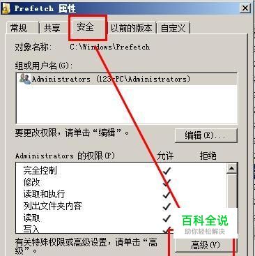 点击安全——选择123-pc,也就是你的电脑名,点击编辑。