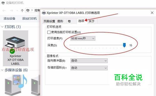处理步骤:电脑上操作点“1 . 开始”→“2 . 设备和打印机(win10点开始再点设置→设备→打印机和扫描仪→设备和打印机)”→ 3 . 右击 打印机图标→ 4 . 打印首选项→ 5 . 选项
