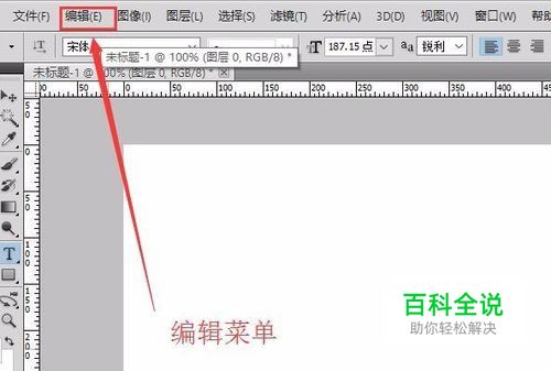 选中图层之后,我们来到Photoshop面板中的菜单栏,选中“编辑”命令,操作如图所示。