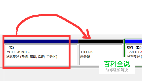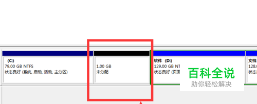 未分配选项上方有黑色框条。它是 C盘分出来的可用空间。