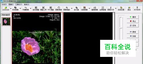 打开文件之后,图像就会在左侧的图像缩略图利显示,我们点击图像缩略图里的图像文件,拖动到黑色的界面上放开,图像就显示了,在图像上可可以看到一些标识,图像的参数之类的。