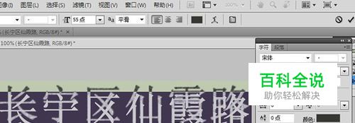 用Photoshop软件打开样张,对比样张,观察字体,我们可以看出样张所用字体是宋体。在样张中输入文字“长宁区仙霞路”。选取样张的颜色填充文字。对比样张的文字大小、高度、宽度,设置文字的大小。可以对比样张文字的大小,实时的调整文字的大小、高度、宽度。
