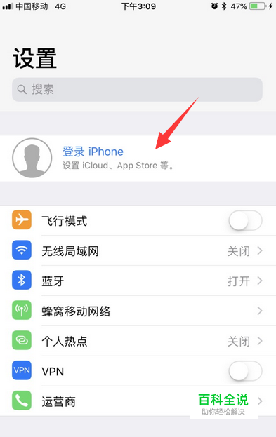 iPhone6plus设置Apple ID,操作非常简单,首先在手机中打开设置,然后在设置页面上方点击登录iPhone选项。(如:图)