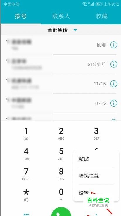 在华为手机上打开拨号界面,然后点击右下角的“功能”按钮,在弹出菜单中选择“设置”菜单项。