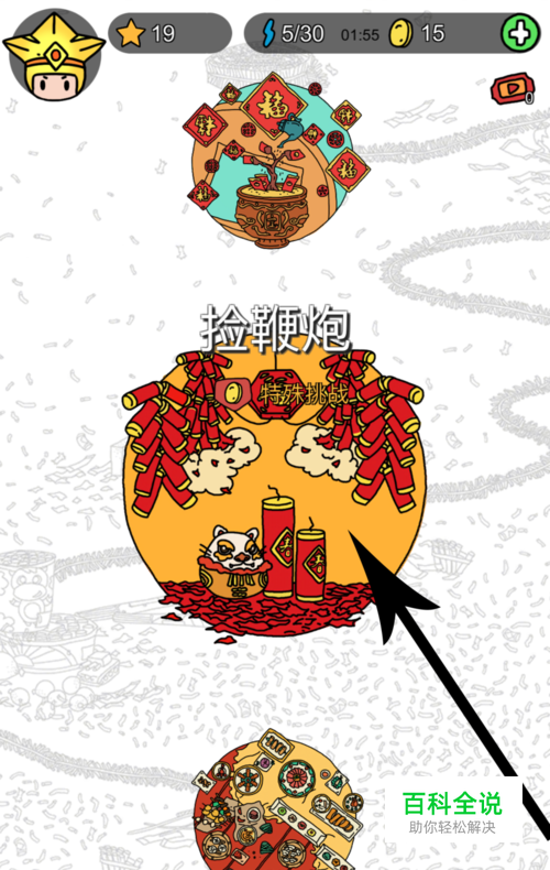 首先在梦境侦探主界面点击捡鞭炮特殊挑战,然后点击“开始”按钮后正式进入游戏