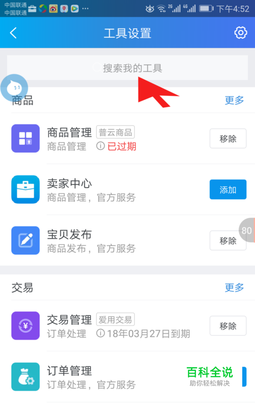 点击设置进入工具设置界面,点击顶部搜索栏输入文字。