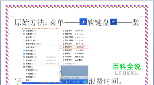 原始方法:菜单——软键盘——数字既浪费时间,又难记住。用搜狗输入法,正常输入速度,不需要鼠标,轻松搞定任何罗马数字的输入。还有其他特殊字符,也可以用这种方法。
