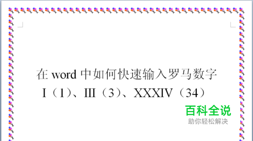 如何在word中快速输入罗马数字,如 I(1)、III(3)、XXXIV(34)。