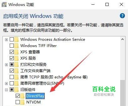 点击旧版组件后,打开折叠菜单,在打开的菜单中选中“Directplay”项目