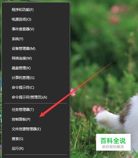 在Windows10桌面右键点击开始菜单按钮,在弹出菜单中选择“控制面板”菜单项