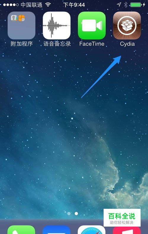 在设备的主屏上找到 “Cydia”越狱应用中心图标,如图所示