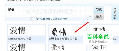 你可以在字体下载页面,输入文字,来预览效果,如图。例如,我需要这个“……小丸子……”的字体,点击这个字体,进入下载页面。