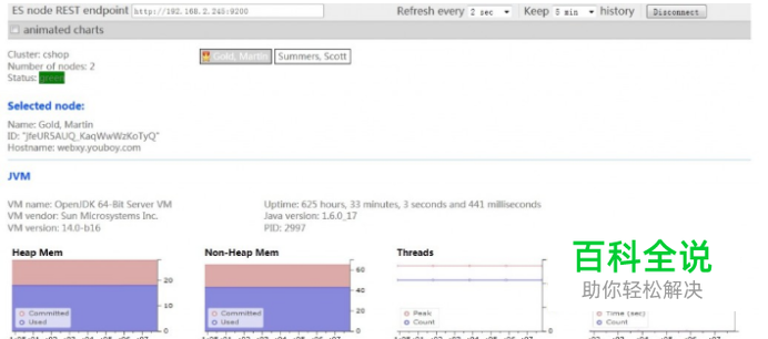 bigdesk是elasticsearch的一个集群监控工具,可以通过它来查看es集群的各种状态,如:cpu、内存使用情况,索引数据、搜索情况,http连接数等。今天,网易视频云就给大家分享关于分布式搜索elasticsearch集群监控工具bigdesk的技术干货! 项目git地址:https://github.com/lukas-vlcek/bigdesk。和head一样,它也是个独立的网页程序,使用方式和head一样。 插件安装运行: 1.bin/plugin -install lukas-vlcek/bigdesk 2.运行es 3.打开http://localhost:9200/_plugin/bigdesk/ 当然,也可以直接下载源码运行index.html 同样是输入ip地址和端口后连接,界面如下。加星的表示主节点。 下面介绍下各个图表。 系统监控: 这里包含系统方面的一些状态,左起分别为:cpu,内存,交换区和平均负载的情况 jvm: 显示jvm的一些状态,左起分别为:jvmheap内存使用情况,蓝色的为已使用内存;非heap使用内存;线程数;gc情况(次数和时间); 进程: 下面四张图主要显示es的进程对系统资源的使用情况,左起分别为:进程打开文件数,内存使用情况,cpu时间和进程的cpu使用率 ps: 内存使用情况中的 Total virtual指linux下虚拟内存,它包括virtual memory map中的所有数据量之和。包括:程序类+程序数据+jar包空间+jre占用空间等。 resident memory指程序实际占用的物理内存。 通讯: 这里可以查看tcp和http链接的一些数据。 索引: 这里可以查看索引数据和搜索的一些情况。 左上起:每秒索引请求,搜索时间,每秒取数据请求,取数据时间。 左下起:缓存大小,缓存失效个数,每秒索引请求,索引时间。 文件系统: 显示硬盘的读写情况